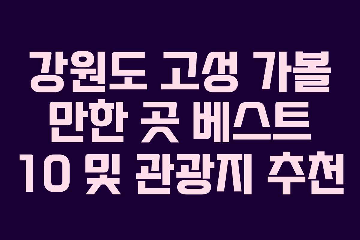 강원도 고성은 자연 경관이 아름답고 다양한 관광지로 가득한 지역입니다. 이번 글에서는 고성에서 꼭 방문해야 할 관광지 10곳과 추가로 추천하는 30곳의 관광지를 소개합니다.