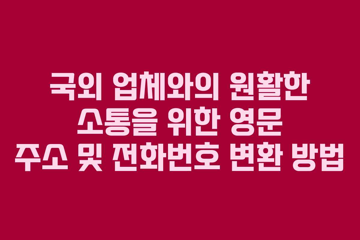 국내 기업들이 국외 업체와 소통할 때 필요한 영문 주소와 전화번호 작성법에 대해 알아보겠습니다. 영어 사용에 익숙하지 않은 분들도 쉽게 따라할 수 있는 방법을 안내드립니다.