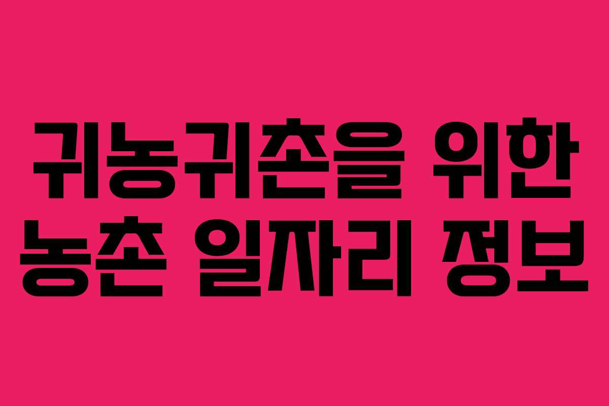 최근 귀농귀촌을 고려하는 사람들이 증가하면서 시골에서의 일자리 정보에 대한 관심도 높아지고 있습니다. 이 글에서는 농촌 일자리 정보를 쉽게 찾을 수 있는 방법과 유용한 사이트를 소개하겠습니다.