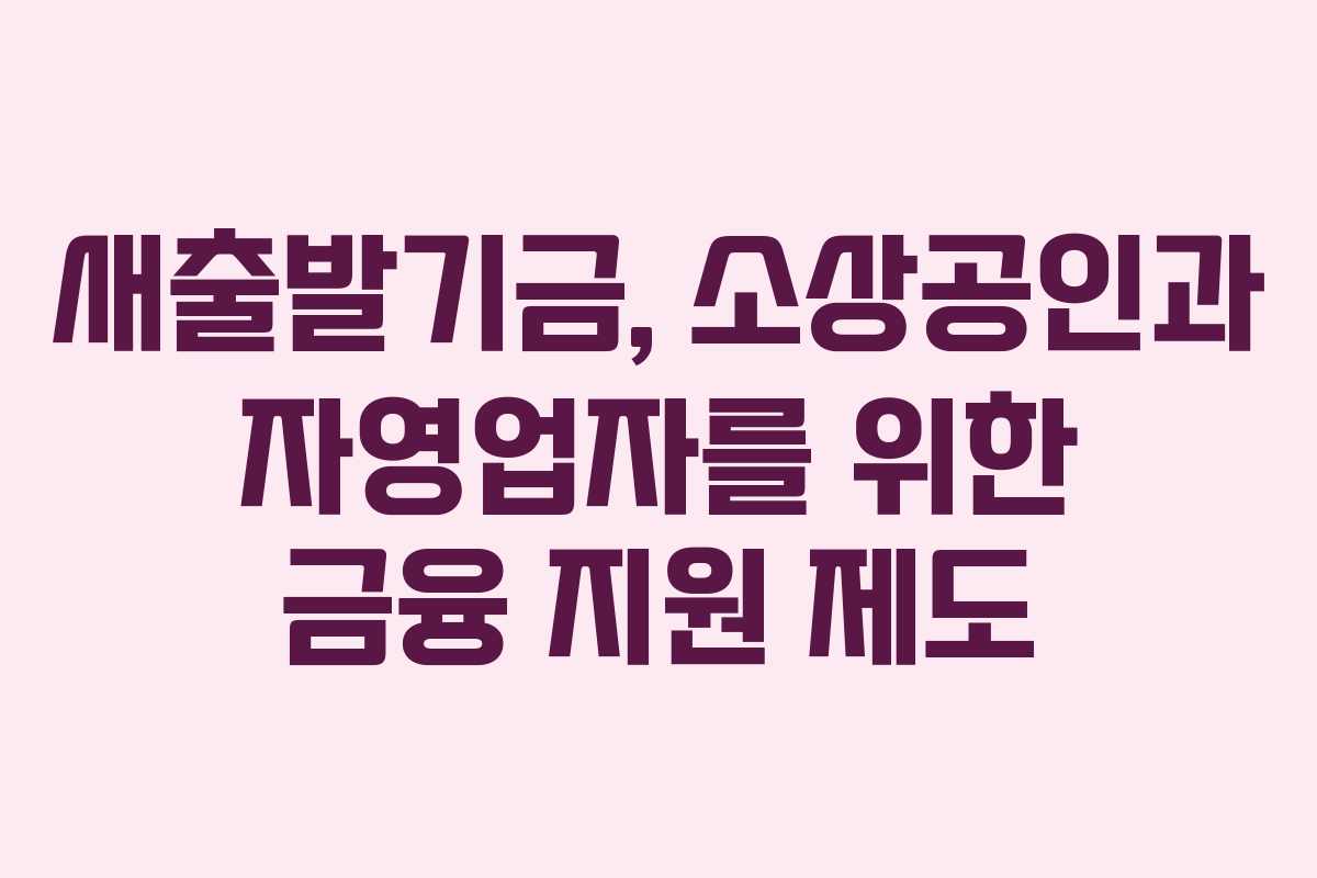 새출발기금, 소상공인과 자영업자를 위한 금융 지원 제도