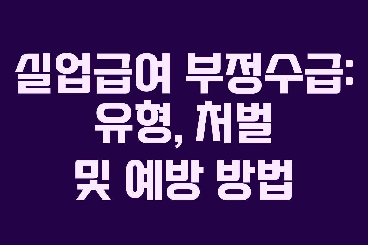 실업급여를 수급하려는 근로자들은 부정수급에 대한 이해가 필요합니다. 부정수급이란 실업급여를 부정한 방법으로 수령하는 것으로, 이에 대한 유형과 처벌, 그리고 이를 피하는 방법을 알아보겠습니다.