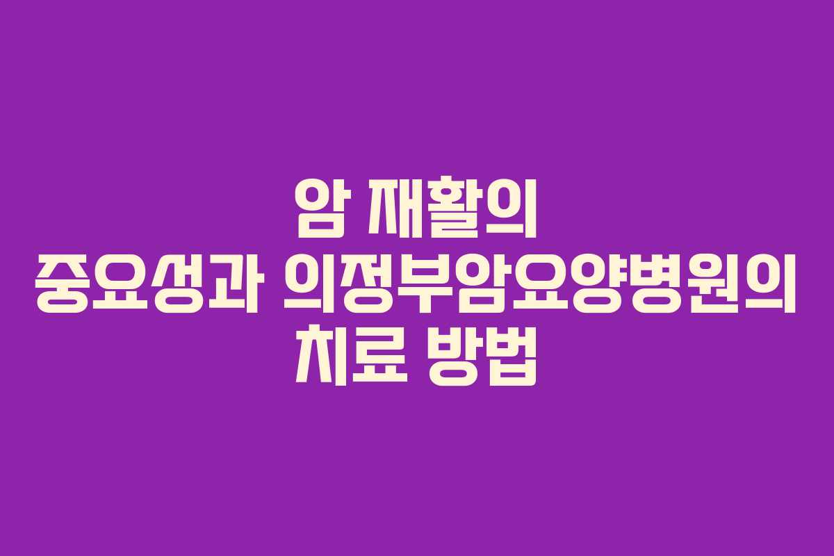 암 재활의 중요성과 의정부암요양병원의 치료 방법