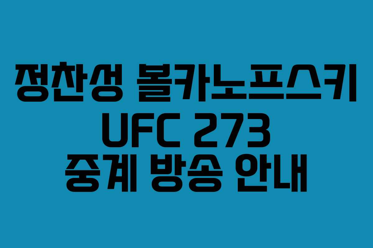 정찬성 볼카노프스키 UFC 273 중계 방송 안내