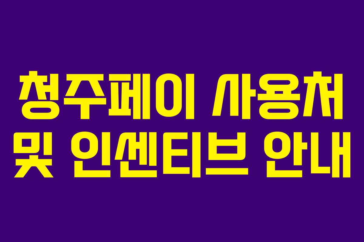 청주페이는 청주 시민들이 지역 경제를 지원하고 편리하게 결제할 수 있는 금융 서비스입니다. 청주 페이를 통해 다양한 가맹점에서 혜택을 누릴 수 있으며, 인센티브 제도를 통해 추가적인 소득 공제 혜택도 받을 수 있습니다.
