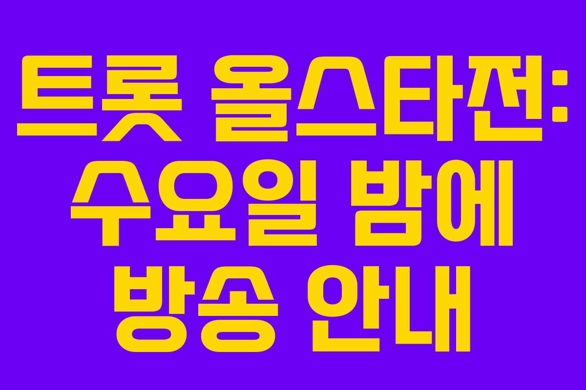 트롯 올스타전은 2025년 4월 16일부터 매주 수요일 밤 10시에 정규 편성되어 방영됩니다. 특히, 이 프로그램은 전통 트로트를 기반으로 한 라이브 무대를 중심으로 구성되어 있어 시청자들에게 즐거움을 더할 것으로 예상됩니다.