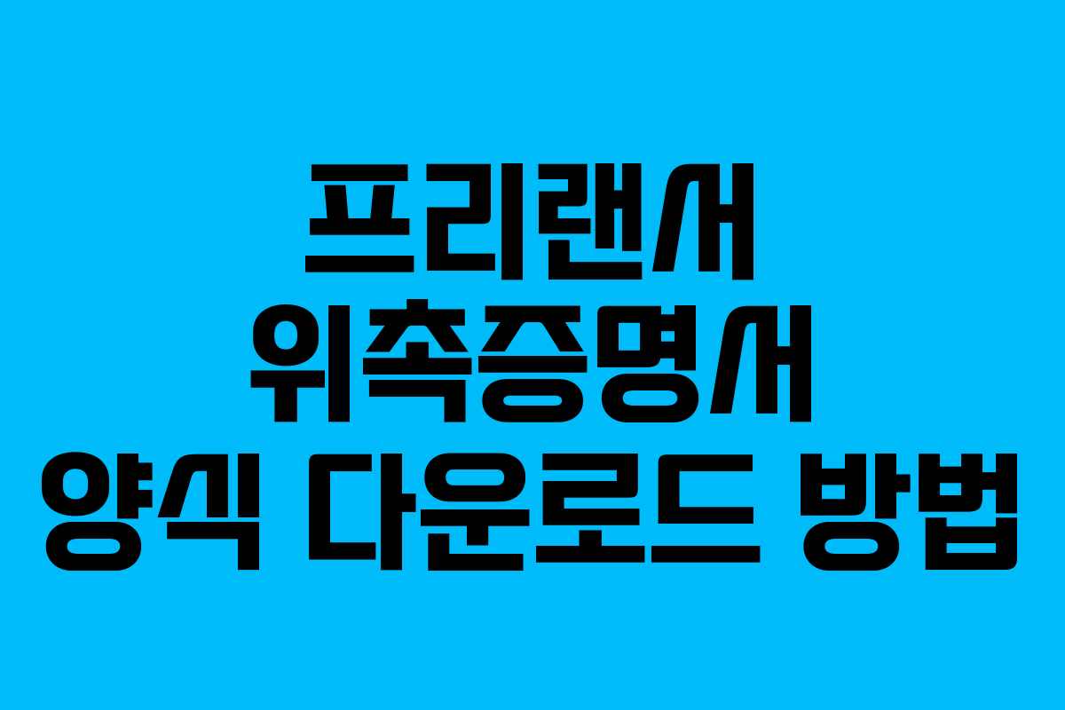 프리랜서 위촉증명서를 발급하기 위해서는 통일된 양식을 갖춰두는 것이 좋습니다. 아래 링크를 통해 위촉증명서 양식 3종을 다운로드하고 필요한 정보를 수정하여 사용하시면 됩니다.