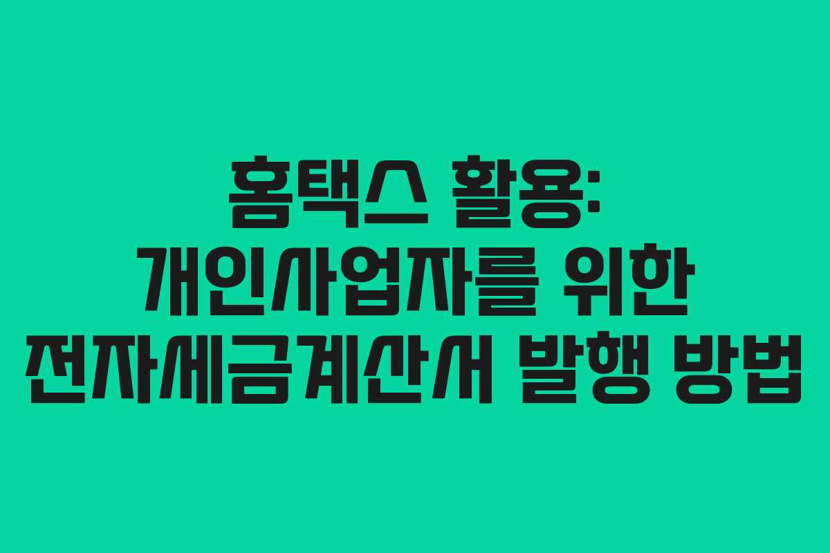 홈택스를 통해 전자세금계산서를 발행하는 것은 개인사업자에게 필수적인 과정입니다. 이 글에서는 전자세금계산서를 쉽게 발행할 수 있는 방법을 단계별로 설명합니다.